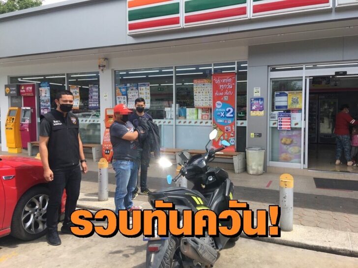 จนกระทั่งสามารถจับกุมตัวนายธีรวัฒน์ ว่องวิทยากุล อายุ 40 ปี อยู่บ้านเลขที่ 72/10 ซอย รร.เทศบาลวัดตรังคภูมิพุทธ ต.กันตัง อ.กันตัง จว.ตรัง ได้ที่บ้านเช่าเลขที่ 43/5 ม.2 ต.หัวรอ อ.เมืองพิษณุโลก จ.พิษณุโลก พร้อมของกลาง รถจักรยายนยนต์ยี่ห้อยามาฮ่า รุ่นแอร์ลอกซ์ สีดำ-เหลือง ทะเบียน 1กฐ-4614 พิษณุโลก ที่ใช้ในการก่อเหตุ และแบตเตอรี่สำรองโทรศัพท์มือถือ ยี่ห้ออีซี่แอนด์เพอเฟคต์ สีดำ จำนวน 1 เครื่อง พร้อม หูฟังบลูทูธ ยี่ห้ออาซากิ สีดำ จำนวน 1 อัน ที่ลักจากร้านสะดวกซื้อไป โดยเจ้าตัวรับสารภาพว่า ไม่มีเงินซื้อแบตเตอรี่สำรองมาใช้กับโทรศัพท์ตนเอง จึงได้ลงมือลักทรัพย์ดังกล่าว โดยเจ้าหน้าที่ตำรวจชุดสืบสวนได้ส่งตัว ให้กับพนักงานสอบสวน สภ.เมืองพิษณุโลก เพื่อดำเนินคดีในข้อหา “ลักทรัพย์โดยใช้ยานพาหนะโดยสะดวกแก่การกระทำผิดหรือการพาทรัพย์นั้นไปหรือให้พ้นการจับกุม หรือรับของโจร”