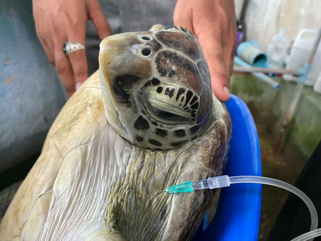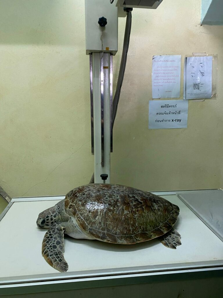 สัตวแพทย์และเจ้าหน้าที่ได้ขนย้ายมาตรวจสุขภาพอย่างละเอียด รักษาและอนุบาลไว้ ณ สถาบันทรัพยากรธรรมชาติและสิ่งแวดล้อม มหาวิทยาลัยเทคโนโลยีราชมงคลศรีวิชัย วิทยาเขตตรัง โดยมีการตรวจร่างกาย เก็บตัวอย่างเลือด ถ่ายภาพรังสี (X-ray) เพื่อตรวจวินิจฉัยเพิ่มเติม ซึ่งพบภาวะการติดเชื้อภายในร่างกาย การอักเสบของกล้ามเนื้อและการสะสมของแก๊สส่วนเกินภายในทางเดินอาหาร เป็นผลให้เต่าตนุอ่อนแรงและไม่สามารถใช้ขาได้ปกติ จึงได้รักษาโดยการให้สารน้ำ ยาปฏิชีวนะ ยาถ่ายพยาธิ วิตามินและป้อนอาหาร เพื่อรักษาภาวะการติดเชื้อ ลดการอักเสบ บำรุงร่างกาย และปรับสมดุลเกลือแร่ในร่างกาย