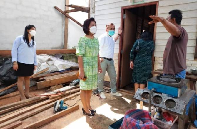 ดร.สัญญา ศรีวิเชียร นายกเทศมนตรีนครตรัง มอบหมายให้ นางสุดใจ ทองย้อย รองนายกเทศมนตรีนครตรัง พร้อมด้วยนางจันทิพย์ รังสิปราการ รองปลัดเทศบาลนครตรัง นายฉัตรชัย มธุรศิลป์ ผู้อำนวยการกองสวัสดิการสังคม นายภาณุพงศ์ วรรณวิไล ผู้อำนวยการส่วนการโยธา สำนักช่าง เจ้าหน้าที่กองสวัสดิการสังคม และเจ้าหน้าที่จากสำนักช่าง ลงพื้นที่เยี่ยมบ้านติดตามการดำเนินการปรับสภาพแวดล้อมที่อยู่อาศัยคนพิการ ตามโครงการปรับสภาพแวดล้อมที่อยู่อาศัยให้แก่คนพิการ ประจำปีงบประมาณ พ.ศ. 2565 จำนวน 2 หลัง หลังแรกชุมชนหลังควนหาญ ซึ่งขณะนี้ดำเนินการไปแล้วกว่า 90% และจะดำเนินการแล้วเสร็จในช่วงสัปดาห์นี้ สำหรับหลังที่ 2 ชุมชนกะพังสุรินทร์ จะเริ่มดำเนินการในวันที่ 27 มิถุนายน 2565