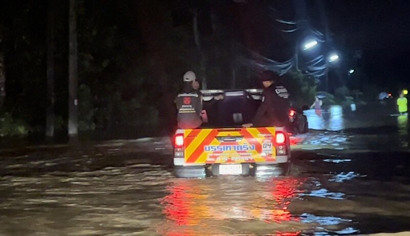 วันที่ 19 ธ.ค. 65 ผู้สื่อข่าวรายงานว่า กลางดึกที่ผ่านมา เจ้าหน้าที่หน่วยกู้ภัยและชุดประดาน้ำ หน่วยกู้ภัยมูลนิธิกุศลสถานตรัง (บ้วนเต็กเซี่ยงตึ๊ง) รับแจ้งขอให้เข้าช่วยเหลือ นำตัวนายสุชาติ อายุ 53 ปี อดีตครูโรงเรียนเอกชน ซึ่งเป็นผู้ป่วยติดเตียง เนื่องจากติดอยู่ภายในบ้าน ต.แหลมสอม อ.ปะเหลียน จ.ตรัง กว่า 4 ชั่วโมงแล้ว หลังจากมวลน้ำป่าเข้าท่วมบ้าน สูงระดับหน้าอก ถึงลำคอ หรือกว่า 2 เมตร ญาติและครอบครัวจึงไม่สามารถนำตัวออกมาเองได้