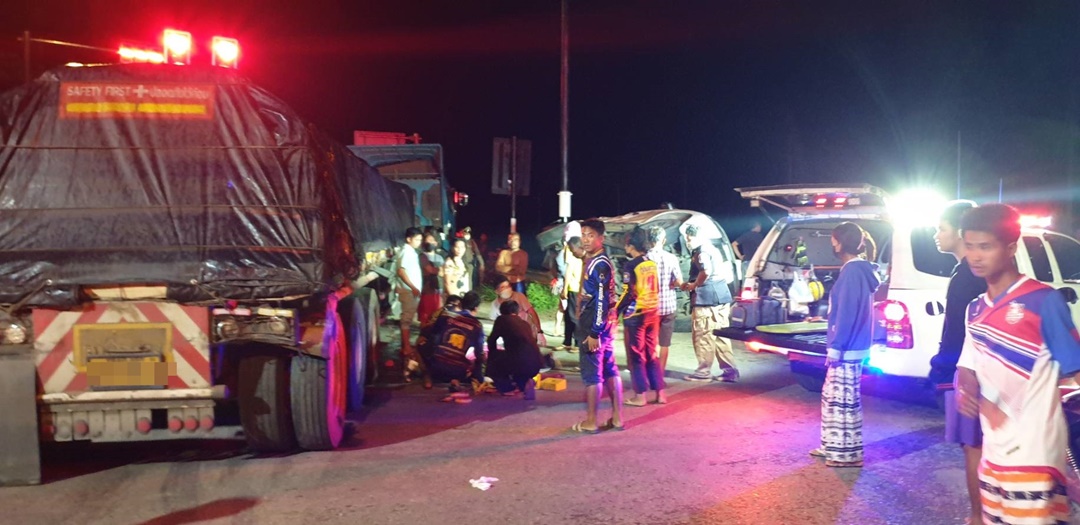 ที่เกิดเหตุพบรถยนต์ปาเจโร่ สีขาว สภาพรถพังยับเยินกลายเป็นเศษเหล็ก ชนอัดติดกับราวสะพานภายในซากรถ พบผู้บาดเจ็บทั้งหมด 6 ราย ชาย 1 ราย เป็นคนขับบาดเจ็บเล็กน้อยทราบชื่อนายธนกฤต (ขอสงวนนามสกุล) อายุ 43 ปี ส่วนหญิง 5 ราย ทางเจ้าหน้าที่กู้ภัยจึงช่วยกันงัดร่างผู้บาดเจ็บออกมาจากซากรถก่อนนำส่งโรงพยาบาลไป 4 ราย