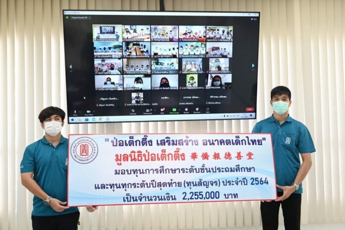 ผู้สื่อข่าวรายงานว่า มูลนิธิป่อเต็กตึ๊ง นำโดย นางศิริกุล โอภาสวงศ์ กรรมการและเลขาธิการ เป็นประธานในพิธี พร้อมด้วยนายจารุรัตน์ คุณัตถานนท์ กรรมการและเหรัญญิก นายนิพนธ์ ลีละศิธร กรรมการ ร่วมในพิธีมอบทุนการศึกษาระดับชั้นประถมศึกษา และทุนทุกระดับปีสุดท้าย (ทุนสัญจร) ประจำปี พ.ศ. 2564 แก่เยาวชนที่ประพฤติดีแต่ขาดแคลนทุนทรัพย์ในพื้นที่ภาคใต้ 6 จังหวัด ประกอบด้วย จังหวัดตรัง สงขลา นครศรีธรรมราช สุราษฎร์ธานี พัทลุง และกระบี่ รวม 265 ทุน รวมเป็นเงินจำนวน 2,255,000 บาท เพื่อสนับสนุนให้เยาวชนได้รับโอกาสทางการศึกษาอย่างเท่าเทียมตามที่มุ่งหวัง เติบโตพร้อมมีวิชาความรู้ สร้างอนาคตของตนเองและครอบครัว เป็นคนดีของสังคมและประเทศชาติ อีกทั้งยังเป็นการช่วยเหลือแบ่งเบาภาระของผู้ปกครอง โดยเฉพาะอย่างยิ่งในช่วงสถานการณ์การแพร่ระบาดของโควิด-19 ซึ่งในปีนี้มูลนิธิฯ กำหนดให้มอบผ่านระบบออนไลน์ [Zoom] โดยมีบุคลากรจากสถานศึกษา และเยาวชนจากสถาบันต่างๆ ร่วมในพิธีมอบผ่านระบบออนไลน์