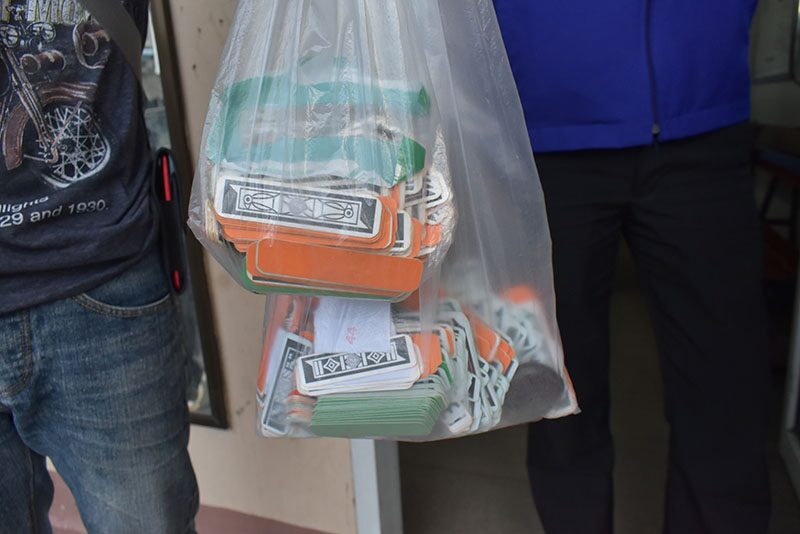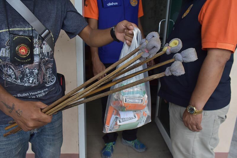 เมื่อไปถึงปรากฏว่า พบผู้ต้องหานั่งเล่นไพ่ผ่องไทยกันอยู่จริง ซึ่งสถานที่เป็นเชิงเขา โดยกางเต็นท์เป็นที่เล่นภายในป่า จึงแสดงตัวเข้าจับกุม โดยสามารถจับกุมผู้ต้องหาได้ทั้งหมด 7 ราย เป็นชาย 2 ราย หญิง 5 ราย พร้อมด้วยของกลางไพ่ผ่องไทย จำนวน 288 ใบ โต๊ะไม้สำหรับเล่นไพ่ผ่องไทย จำนวน 1 ตัว และไม้เขี่ยไพ่ 6 อัน ก่อนนำตัวผู้ต้องหาทั้งหมดนำทำบันทึกจับกุมที่ สภ.เมืองตรัง