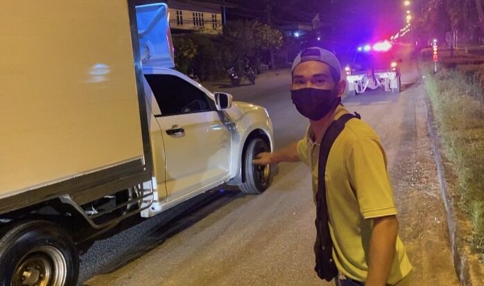 จากการสอบถาม นายสอด สุขแสง อายุ 32 ปี ขับรถกระบะห้องเย็น บอกว่า ขณะที่ตนกำลังขับรถเลี้ยวออกมาจากซอย เป็นจังหวะเดียวกันที่มีรถจักรยานยนต์ของสองวัยรุ่นขับย้อนศรมาในเลนขวาสุดซึ่งอยู่ติดกับเกาะกลางถนน ทำให้ชนประสานงานกันอย่างจัง จนทำให้ได้บาดเจ็บดังกล่าว โดยทางนายสอดขับรถกระบะห้องเย็นก็ได้ยืนรอให้ปากคำกับเจ้าหน้าที่ตำรวจอยู่ในที่เกิดเหตุ
