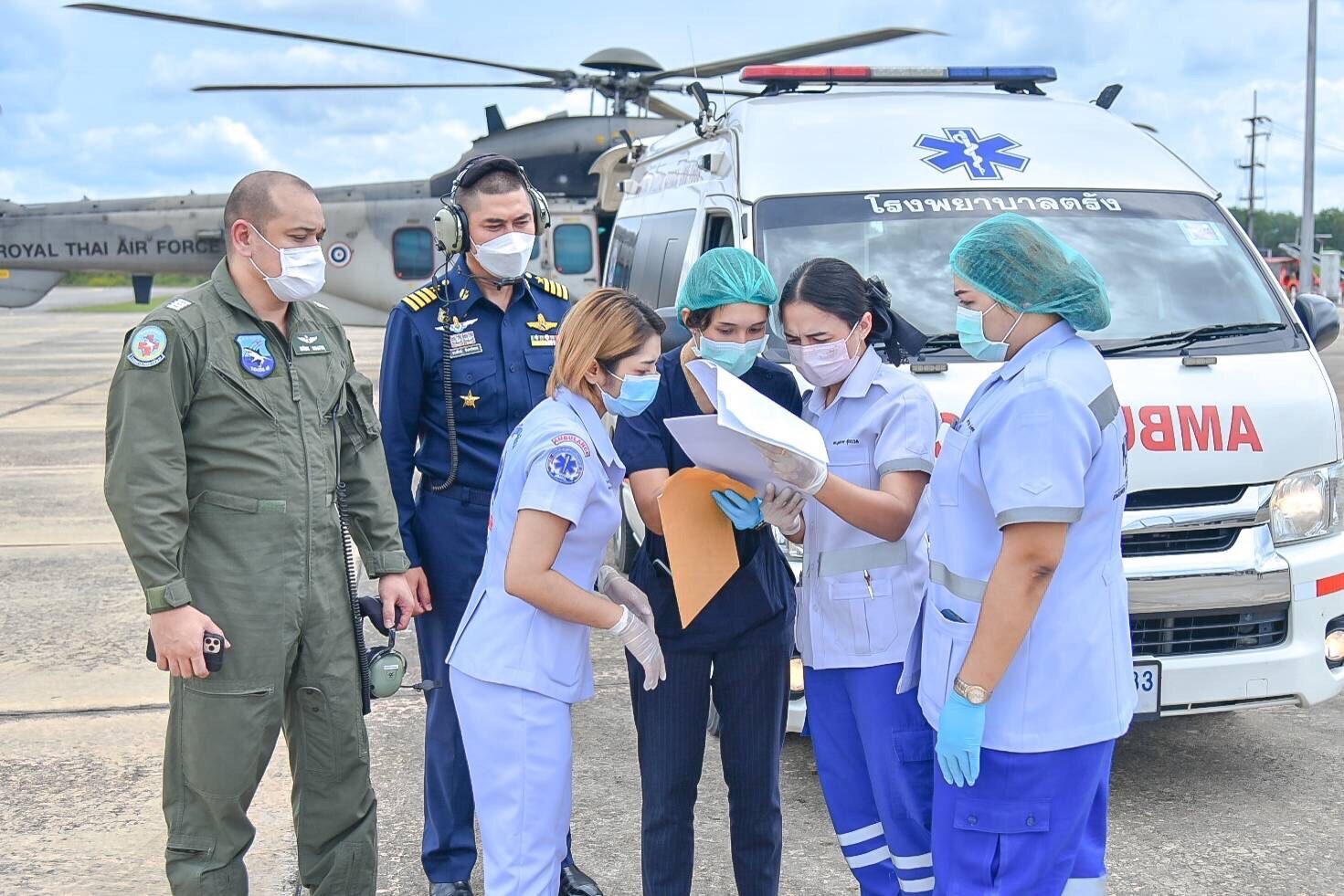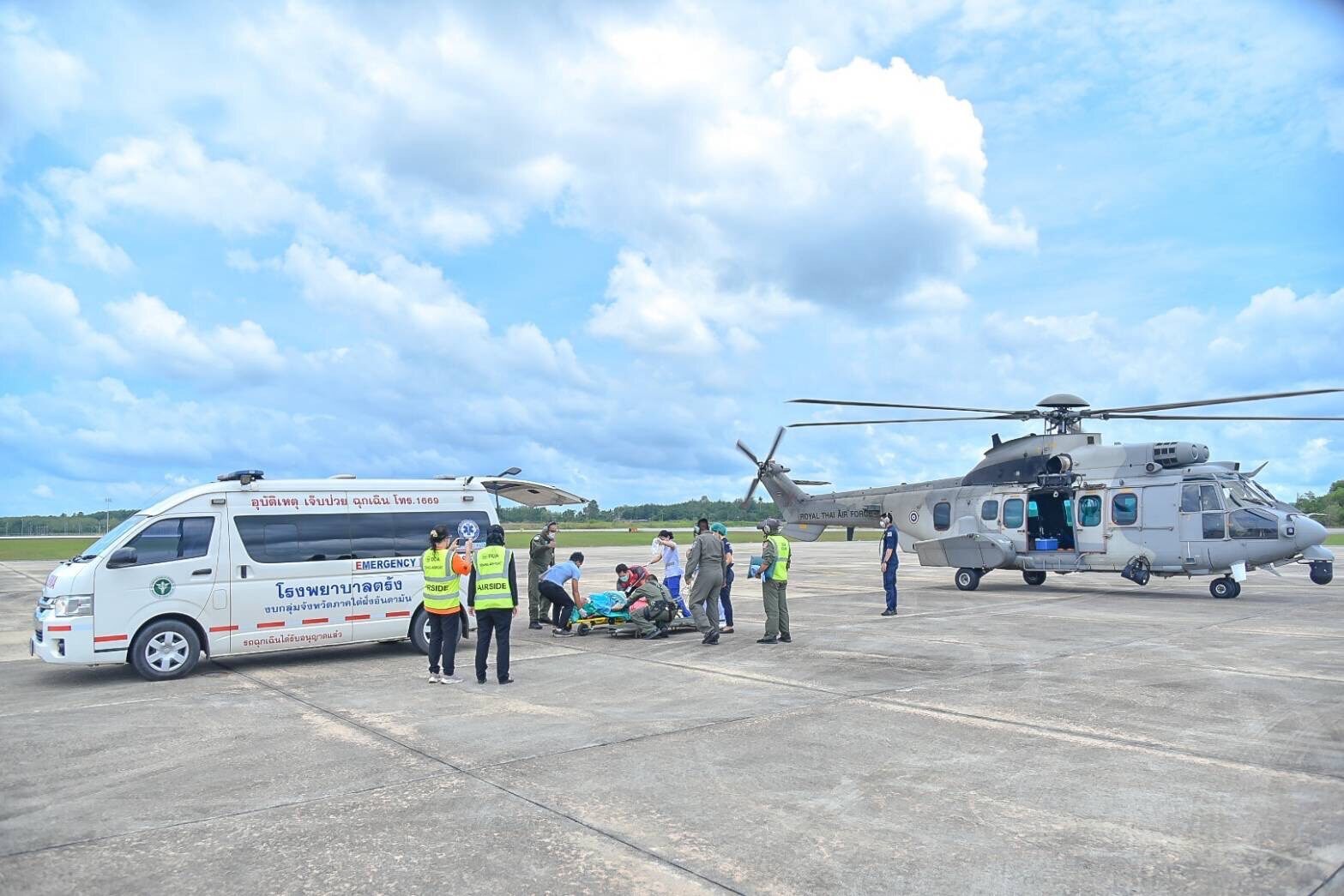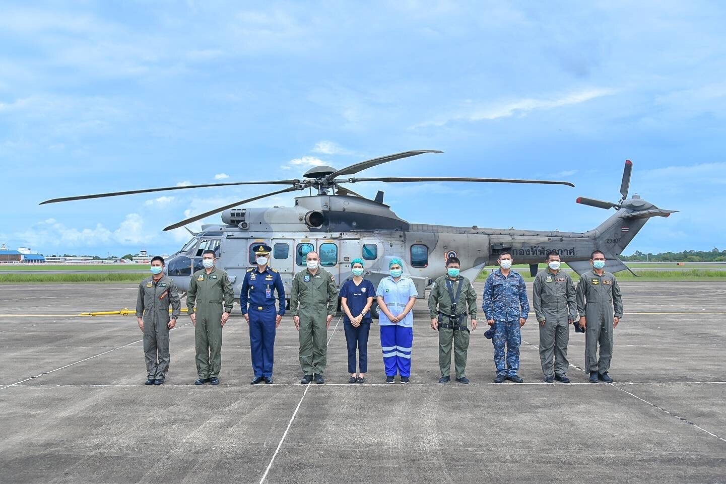 โดยส่งเฮลิคอปเตอร์แบบที่ 11 (EC-725) สังกัดหน่วยบิน 2037 พร้อมด้วย นาวาอากาศเอก ธนพันธ์ จันทร์หอม รองผู้บังคับการกองบิน 7 และ นาวาอากาศเอก ทศพล ทองงาม ประจำกองบิน 7 และรักษาราชการ ผู้อำนวยการโรงพยาบาลกองบิน กองบิน 7