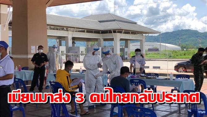 เวลา 13.00 น.วันที่ 16 ก.ค.64 ศูนย์ปฏิบัติการควบคุมโรค (ศปก.) อ.แม่สาย นำโดยนายประสงค์ หล้าอ่อน นายอำเภอแม่สาย ในฐานะหัวหน้าศูนย์ฯ ได้ให้เจ้าหน้าที่รับมอบตัว คนไทย 3 คน โดยทางเจ้าหน้าที่ตรวจคนเข้าเมือง (ตม.) เมียนมา ได้นำตัวคนไทยมาส่งให้ คือ นายวุฒิชัย อายุ 24 ปี ชาว อ.กันตัง จ.ตรัง  นายชัยวัฒน์ อายุ 24 ปี ชาว อ.เมืองเลย จ.เลย และนายรณชัย อายุ 36 ปี ชาว อ.เอราวัณ จ.เลย มาส่งให้กับทางการไทย ที่บริเวณจุดผ่านแดนถาวรสะพานมิตรภาพไทย-เมียนมา ข้ามลำน้ำสายแห่งที่ 2 อ.แม่สาย จ.เชียงราย