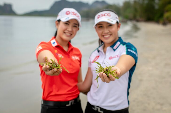 เอสซีจี จึงชวน “โปรจีน” อาฒยา ฐิติกุล และ “โปรเมียว” ปาจรีย์ อนันต์นฤการ ซึ่งนอกจากมีดีกรีเป็นโปรกอล์ฟหญิงระดับโลกแล้ว ยังเป็นคนรุ่นใหม่ที่รักทะเลและสิ่งแวดล้อมแบบสุดๆ มาร่วมส่งต่อแรงบันดาลใจผ่านคลิปออนไลน์ชุดใหม่ ชวนทุกคนให้รู้จักกับ “หญ้าทะเล” ฮีโร่ของการดูดซับก๊าซคาร์บอนไดออกไซด์ที่เป็นสาเหตุสำคัญของภาวะโลกร้อนได้มากกว่าการปลูกต้นไม้บนบกถึง 4 เท่า เพื่อช่วยกู้วิกฤตโลกร้อนที่ส่งผลกระทบถึงผืนน้ำที่มีปริมาณถึง 3 ใน 4 ของพื้นที่โลก อีกทั้งหญ้าทะเลยังเป็นแหล่งอาหารของสัตว์น้ำหายากอย่างพะยูนและเต่าทะเล และช่วยคืนสมดุลให้ระบบนิเวศใต้ท้องทะเลเพื่อคนในชุมชนด้วย