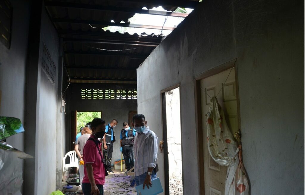 เมื่อวันที่ 25 ม.ค.65 เจ้าหน้าที่ตำรวจชุดพิสูจน์หลักฐาน สภ.เมืองตรัง นำกำลังเดินทางตรวจสอบภายในบ้านเลขที่ 43/3 หมู่ 9 ต.โคกหล่อ อ.เมือง จ.ตรัง หลังเมื่อช่วงคืนที่ผ่านมา เกิดเหตุไฟไหม้บ้านไม่ทราบสาเหตุ ซึ่งญาติเชื่อว่านายประวิช หรืออาร์ม อ่อนจุติ อายุ 30 ปี ลูกชายเจ้าของบ้านซึ่งมีพฤติกรรมคลุ้มคลั่งเป็นผู้ก่อเหตุ